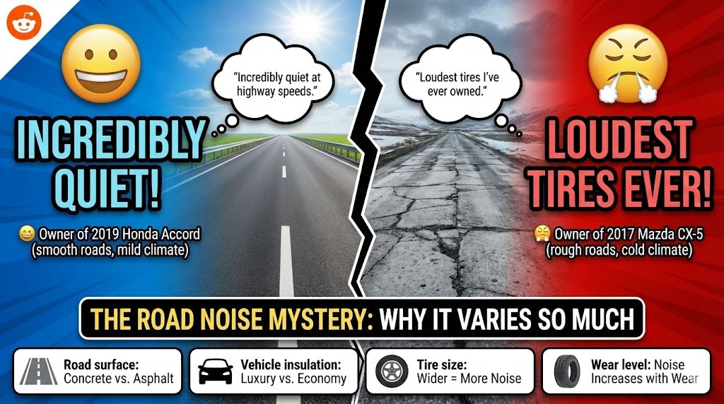 This is where Reddit opinions diverge wildly. Some users call them “incredibly quiet,” while others say they’re “the loudest tires she’s ever had.” What’s going on?