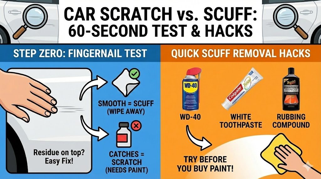 Before you buy paint, you need to know what you’re dealing with. Many “scratches” are actually paint transfer—residue from whatever hit your car that’s sitting on top of your clear coat.