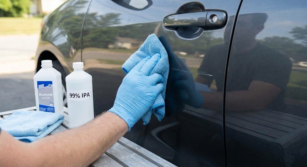 Paint will not stick to wax, grease, or dirt. Use Isopropyl Alcohol (IPA) or acetone on a clean microfiber cloth to thoroughly clean the scratch. Let it dry completely. Skip this, and your hard work will peel off in a week.