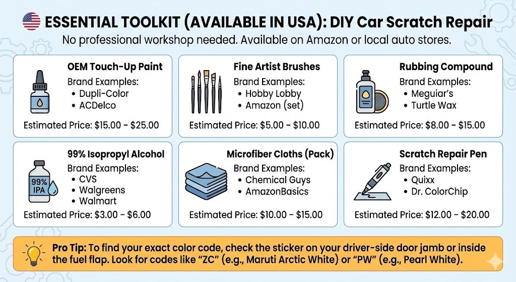 💡 Pro Tip: To find your exact color code, check the sticker on your driver-side door jamb or inside the fuel flap. Look for codes like “ZC” (Maruti Arctic White) or “PW” (Pearl White).