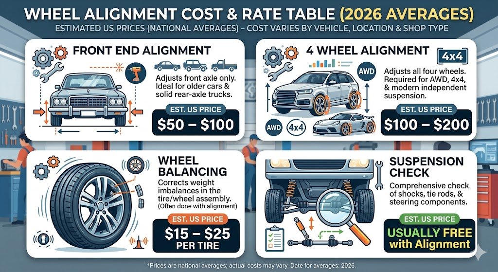 Wheel Alignment Cost & Rate Table (2026 Averages)