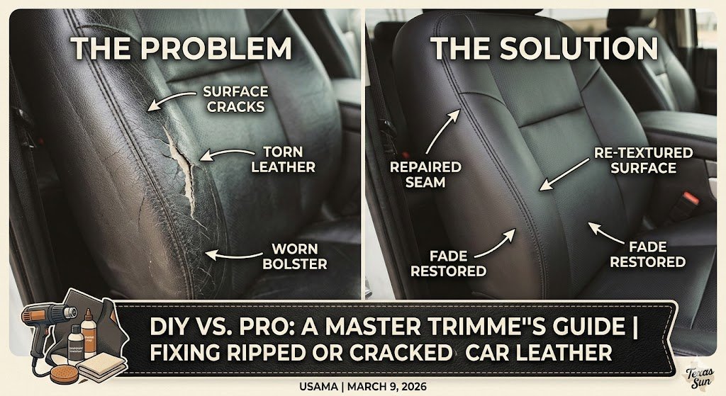 In our Dallas shop, the number one mistake we see is customers using saddle soap or mink oil on modern automotive leather. These products are designed for boots and horse tack—they’ll destroy the protective topcoat on your truck seats within months.