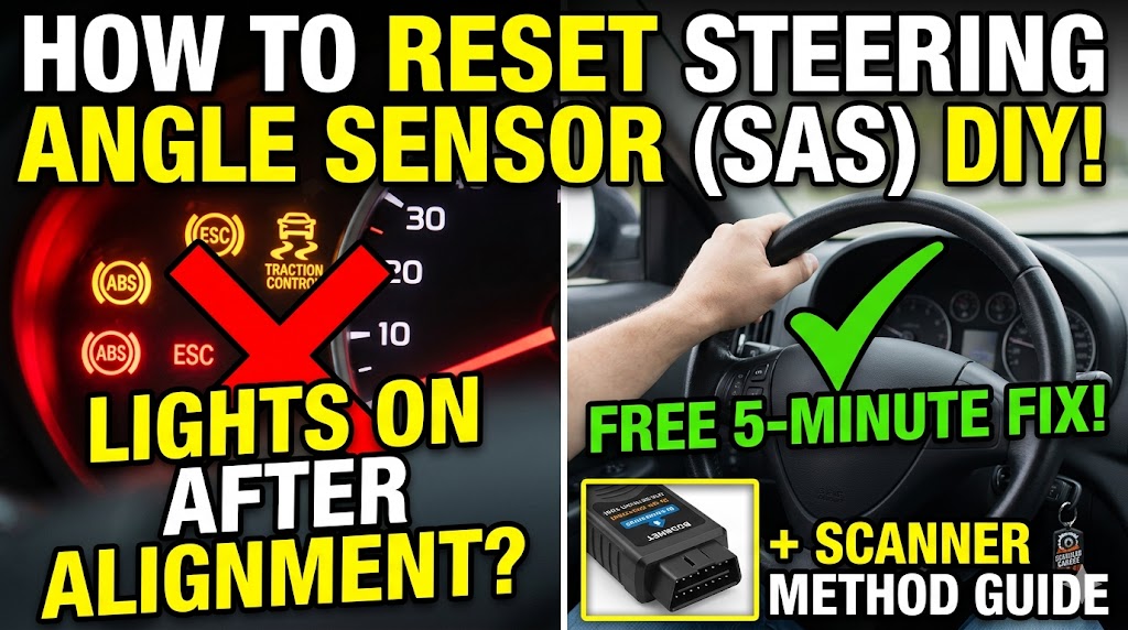 If your dashboard lit up after doing a DIY alignment or suspension work, you’re in the right place. That cluster of warning lights (ABS, ESC, Traction Control) almost always means the Steering Angle Sensor just needs to be re-taught where “straight ahead” is. In most cases, it costs $0 and takes 5 minutes.